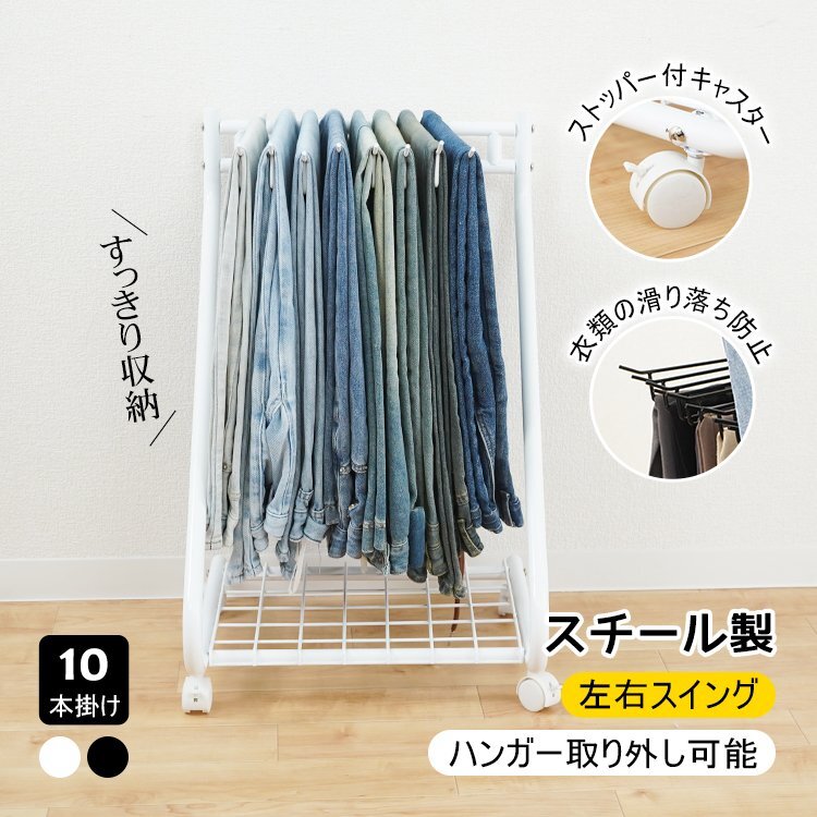 - 送料無料 スラックスハンガー パンツラック 10本掛け ズボンハンガー キャスター 衣類収納 ズボン収納 タオルハンガー 物干し sg250-10