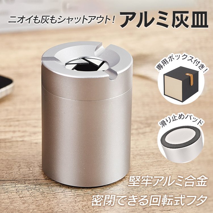 - 送料無料 灰皿 アルミ アルミ合金 密閉 回転式フタ 幅7cm 専用ボックス 箱付き 車用 車載 タバコ 滑り止め ドリンクホルダー対応 tkee001-b