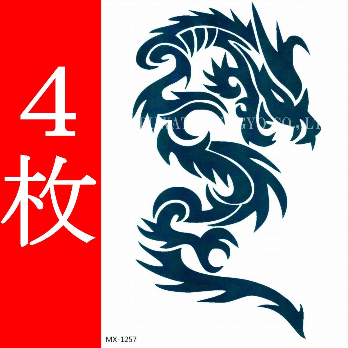 - タトゥーシール 4枚 21X15cm 入墨 タトゥーステッカー 消せる刺青 ボディーアート ハロウィン あおり対策 コスプレ 龍 竜 トライバル 青