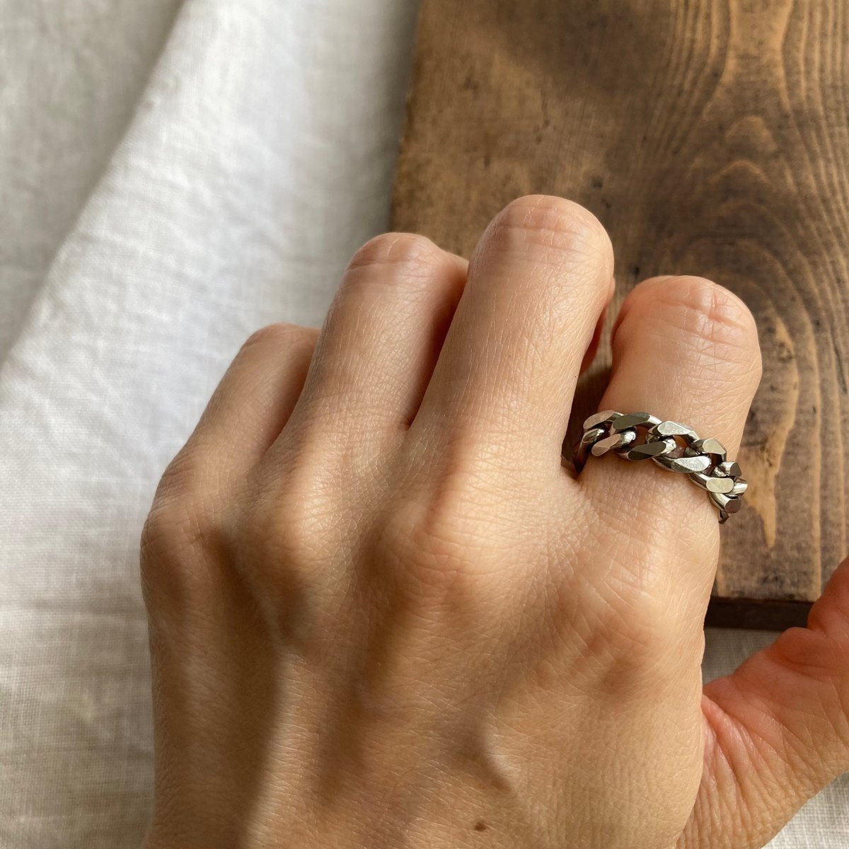 - 27号 チェーンリング/指輪 ステンレスチェーンリング 喜平6面カット 約6.4mm RCK15