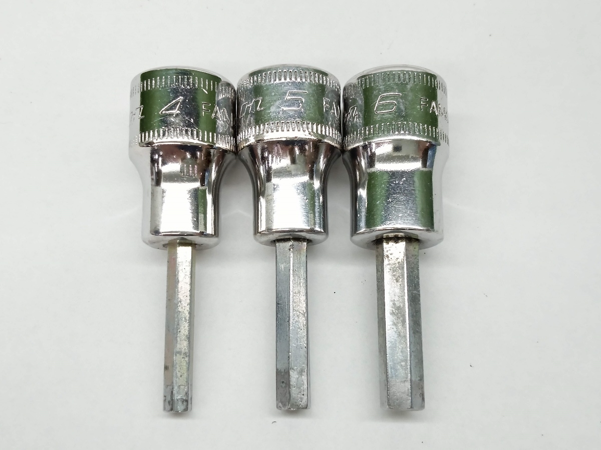 - 中古 snap-on スナップオン 3/8 差し込み ヘックス ソケット 3本セット 不揃い まとめ売り FAM4E / FAM5E / FAM6E