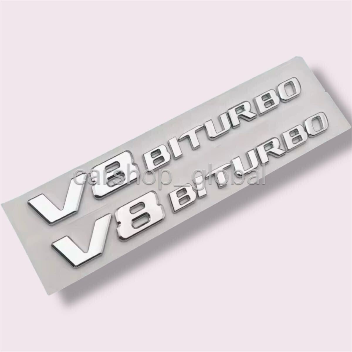 - ベンツ AMG V8 BITURBO サイドエンブレム 2個 シルバー フラット C63/E63/S63/G63/SL55/CLS/GLS/AMG GT/SLS CLA45/A45/GLA45等