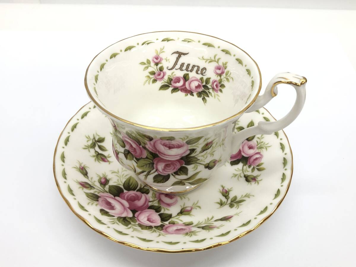 - 美品 ROYAL ALBERT ローヤルアルバート フラワーオブザマンス June 6月 ROSES ローズ カップ&ソーサー 英国製 茶器 洋食器 陶磁器