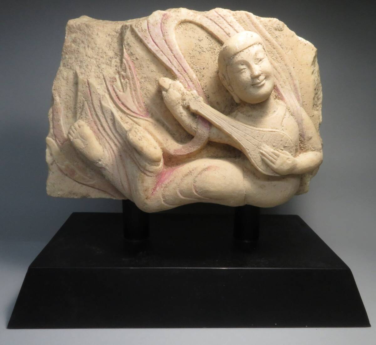- 【東】漢時代 白玉 白玉彫 飛天女像 置物 唐物 唐木台付 中国美術/骨董品 lot:10612