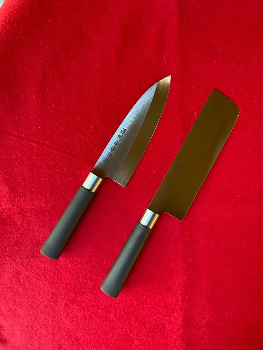 - ☆関の包丁2本セット・菜切+出刃・濃州正宗作・柄部:PP(濃茶)