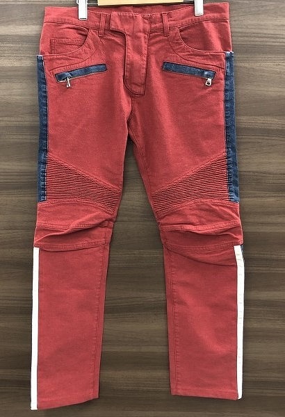 - 期間限定セール バルマン BALMAIN メンズパンツ サイドラインスキニーデニム ジーンズ 32インチ レッド S5HT551C831T