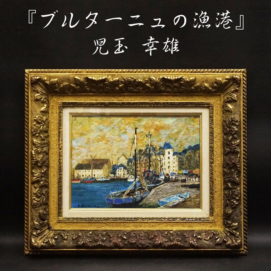 > 児玉幸雄『ブルターニュの漁港』4号 原画 油彩 油絵 直筆 風景画 裏書サイン 肉筆画 絵画 額装 美術 芸術 アート 古美術品 真作保証品