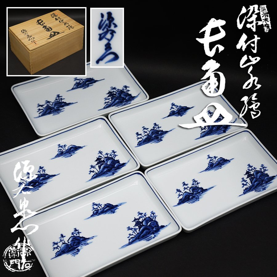 - 館林源右衛門作 有田焼 染付 長角皿 煎茶道具 茶道具 鉢 時代 骨董 共箱 未使用品 長期保管品 極美品 保証品 古美術品