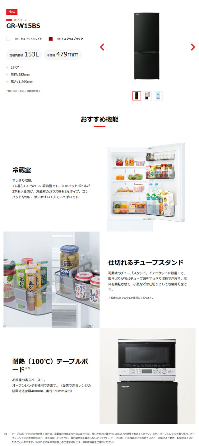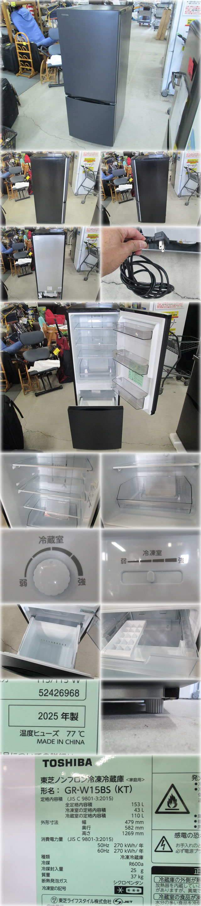 - 【2025年製】東芝 2ドア冷蔵庫 GR-W75BS(KT) エクリュブラック色 479x582x1269mm 153L(冷蔵110L/冷凍43L) 【長野発】