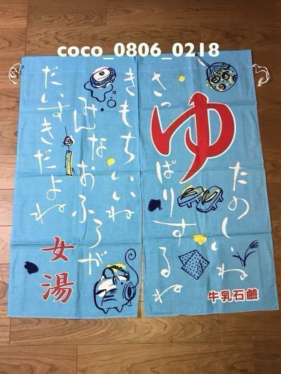 - ♪銭湯 のれん 牛乳石鹸 レトロ 長期保管 経年劣化あり ⑧ 女湯【used】うちわ 風鈴 蚊取り線香(ブタ)