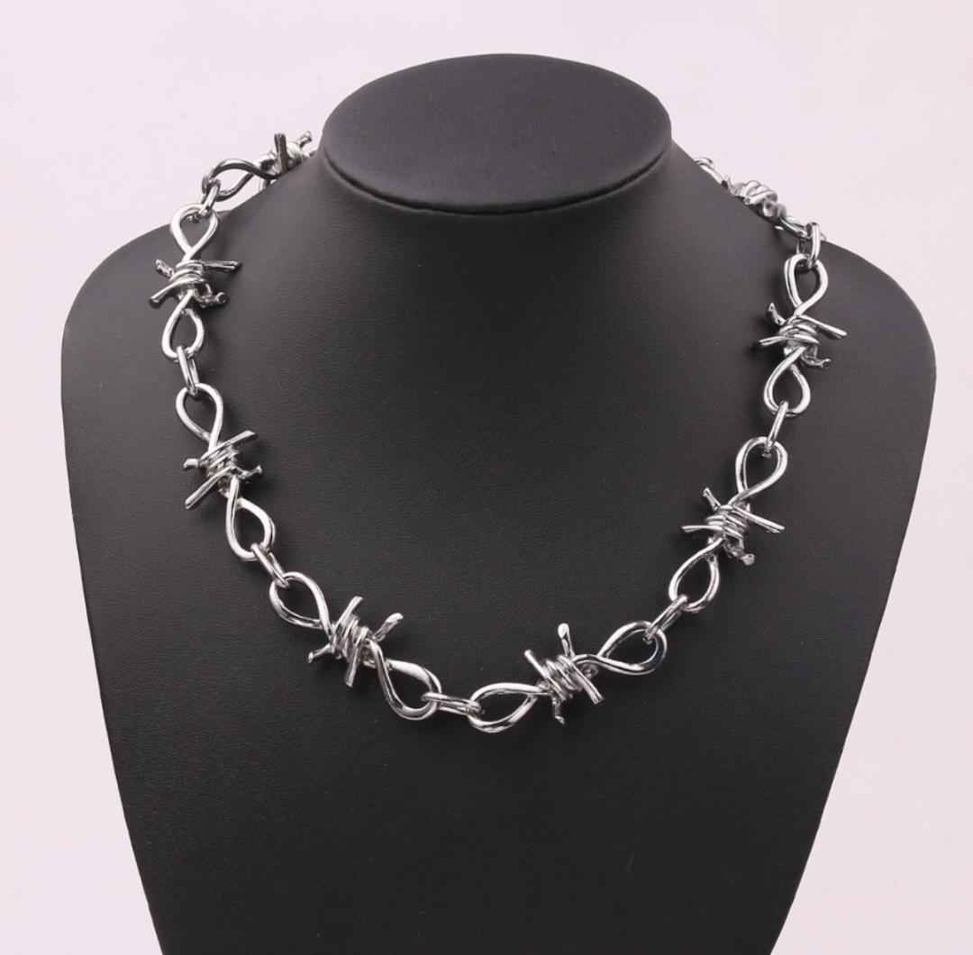 - 有刺鉄線 ネックレス シルバーチェーン 韓国ファッション ロック系