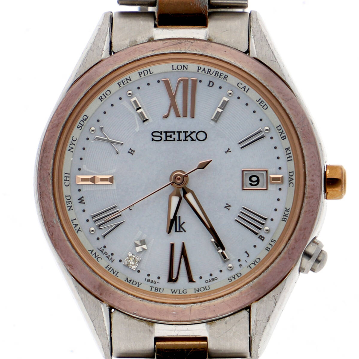 - SEIKO セイコー SSQV040 ルキア ホワイトシェルダイヤル TI/GP ソーラー レディース【136002】