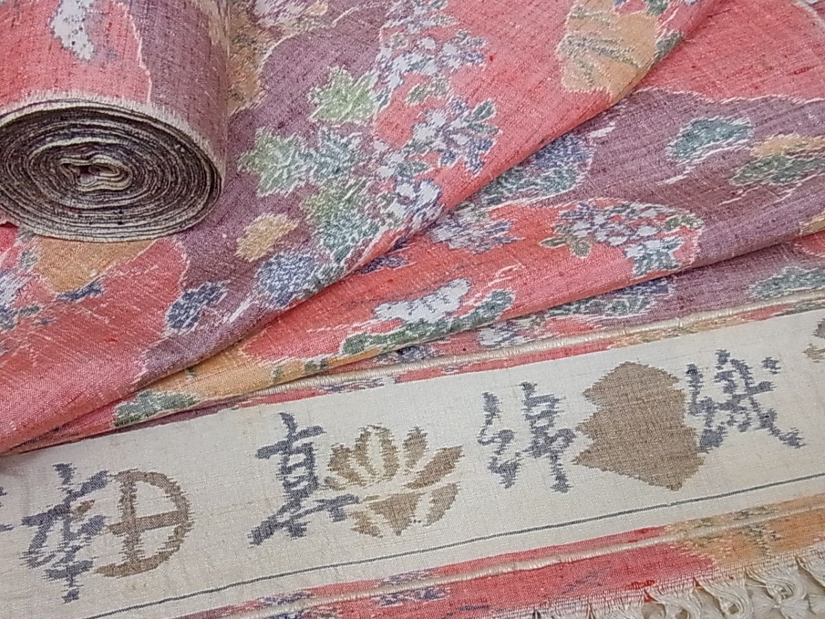- eふれんず◆小千谷紬 本真綿織 反物 着尺 松楓花文 証紙付き 正絹 美品 未使用品 未仕立て◆bm1762
