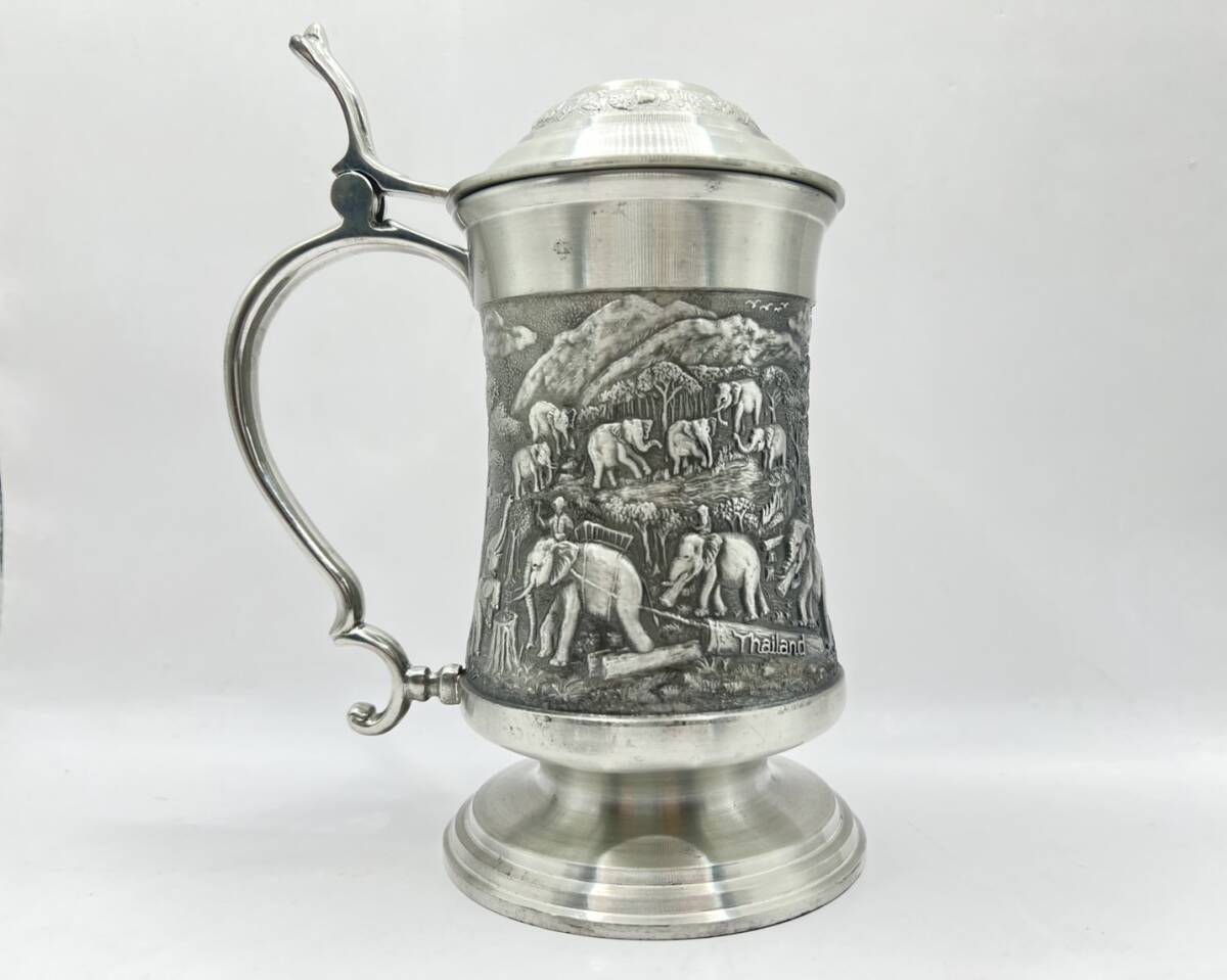 > B)ビールジョッキ ビアマグ TPW TIN97% ピューター 錫製 蓋付きマグカップ ビアジョッキ ヴィンテージ 7J1002