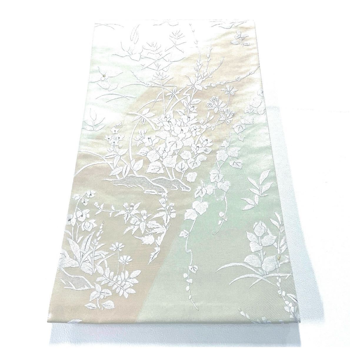 - 帯23 金駒刺繍 刺繍 高級 正絹 太鼓六通 袋帯 菖蒲 mglkjts