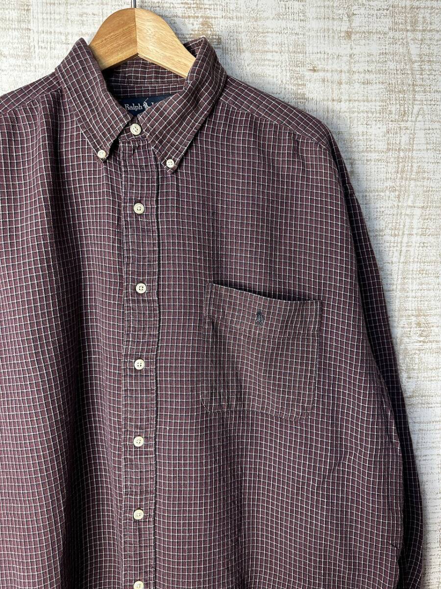 > ☆ビッグサイズ US古着 POLO Ralph Lauren ラルフローレン ネルシャツ チェック柄 ポニーロゴ刺繍 エンジ紫系【XL】コットン ◆5285◆