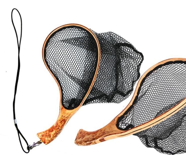 - 人気品品質保証 渓流用 ランディングネット タモ網 玉網 クランク ハンドル ウッドラバーネット フライフィッシング 木製 持ち運び