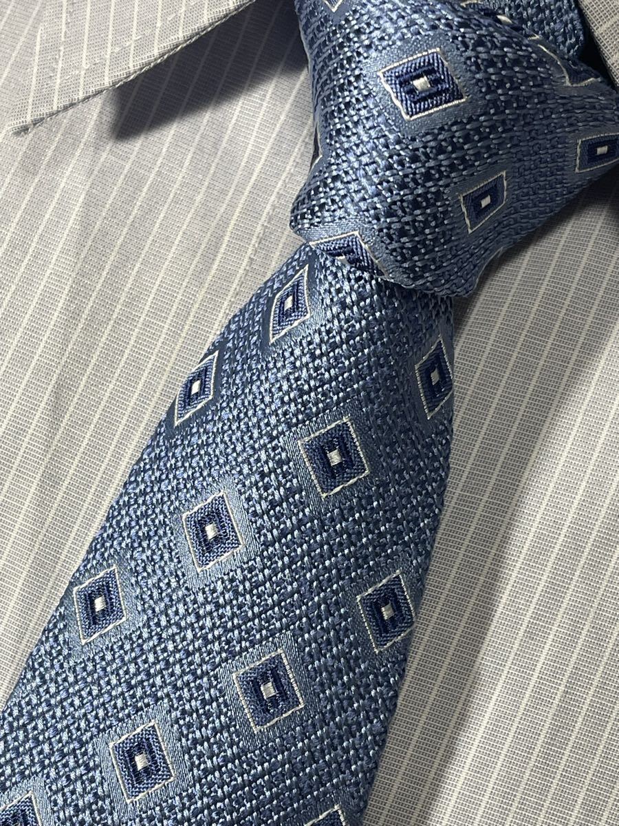 - ほぼ未使用 ″FAIRFAX″ フェアファクス 細身 スクエア ブランドネクタイ 509085
