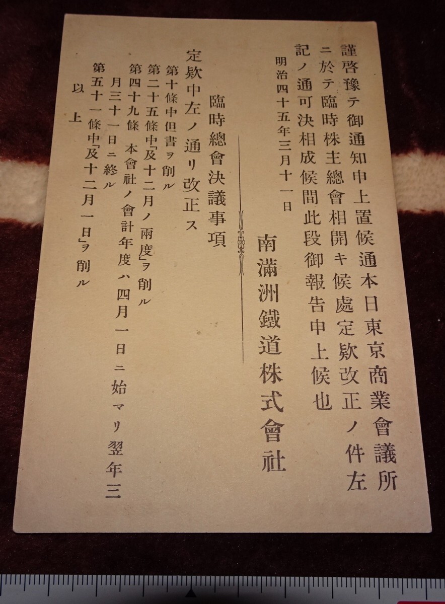 - rarebookkyoto m196 満洲 南満洲鉄道 委任状 絵葉書 実用 1912年 新京 満鉄 大連 清