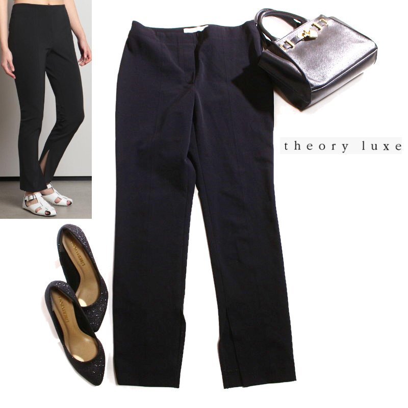 - 美品 Theory luxe セオリーリュクス 秋 冬 合物 ウォッシャブル テーパードパンツ 38 ブラック 黒 裾スリット 美脚 ハイストレッチ 綺麗め
