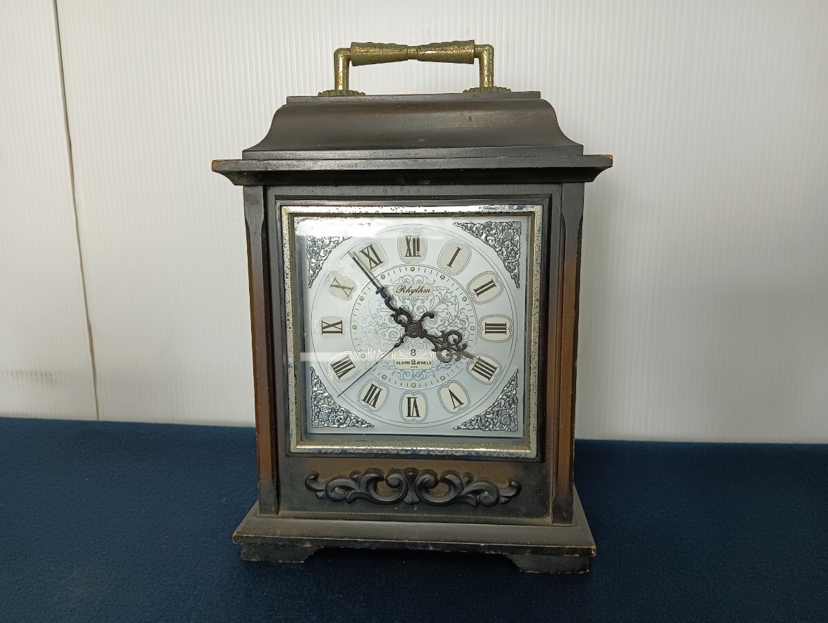 - z968 ジャンク RHYTHM ゼンマイ式 置時計 アンティーク昭和レトロ