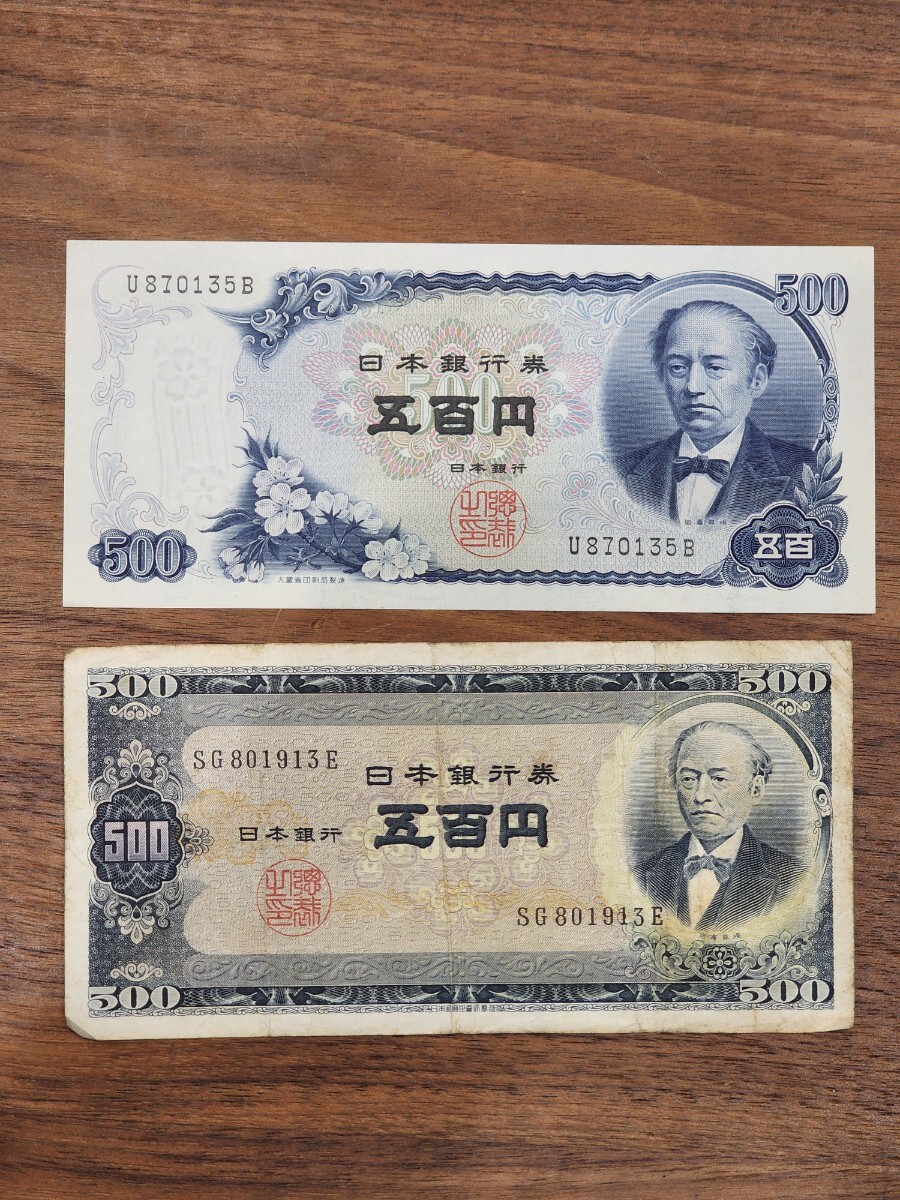 - 未使用 岩倉具視 500円札 2枚 新旧五百円札 額面1000円分 ピン札 旧紙幣 大蔵省印刷局製造 日本政府印刷局製造 千円分 一桁 1ケタ
