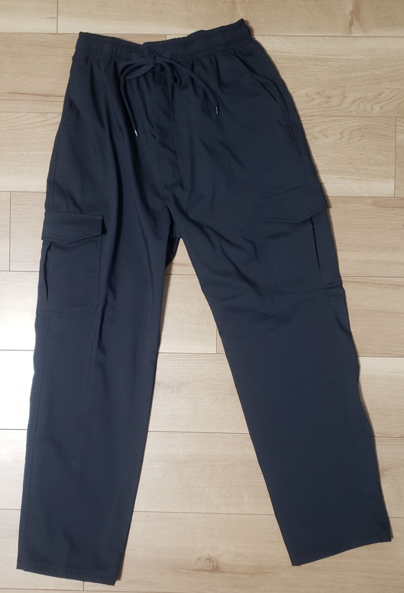> 試着のみ 未使用 LLサイズ(ウェスト小さめ) 股下66センチ カーゴパンツ 紺 ネイビー 裏起毛 前開き ウェスト総ゴム 両サイドポケット有