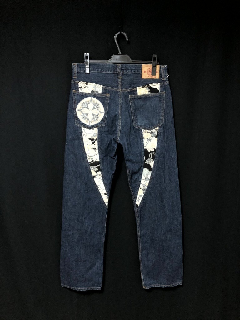 - ◆豊天商店 和柄 デニムパンツ ジーンズ L 濃紺 インディゴ