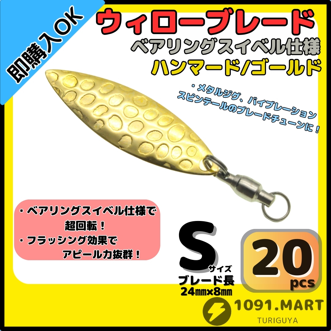 - 【送料150円】ウィローブレード ハンマード/ゴールドSサイズ20個セットボールベアリングスイベル付きスピンテールブレードブレードチューン