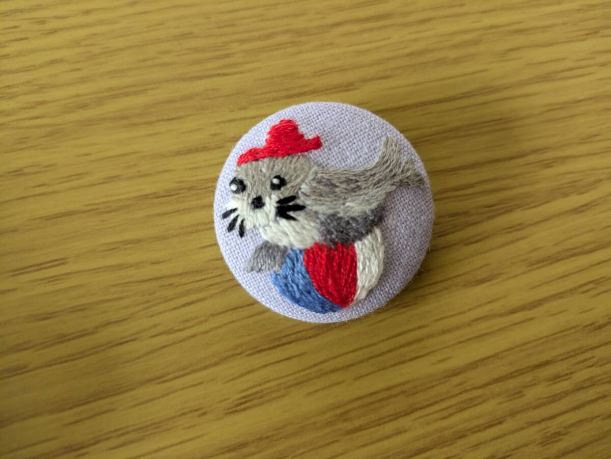 - あざらし 刺繍ブローチ