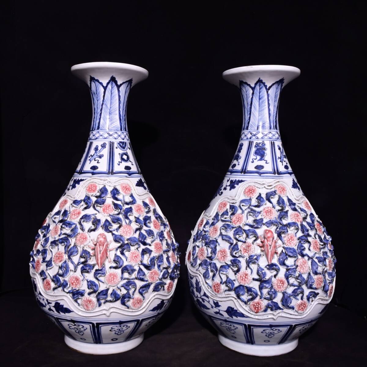 - A_YF0556【惠】人間国宝 中国骨董 陶芸 磁器【元吉思汗款青花釉里紅つま花玉壺春瓶】工芸品 施釉陶 青花磁 陶芸 置物 收藏品