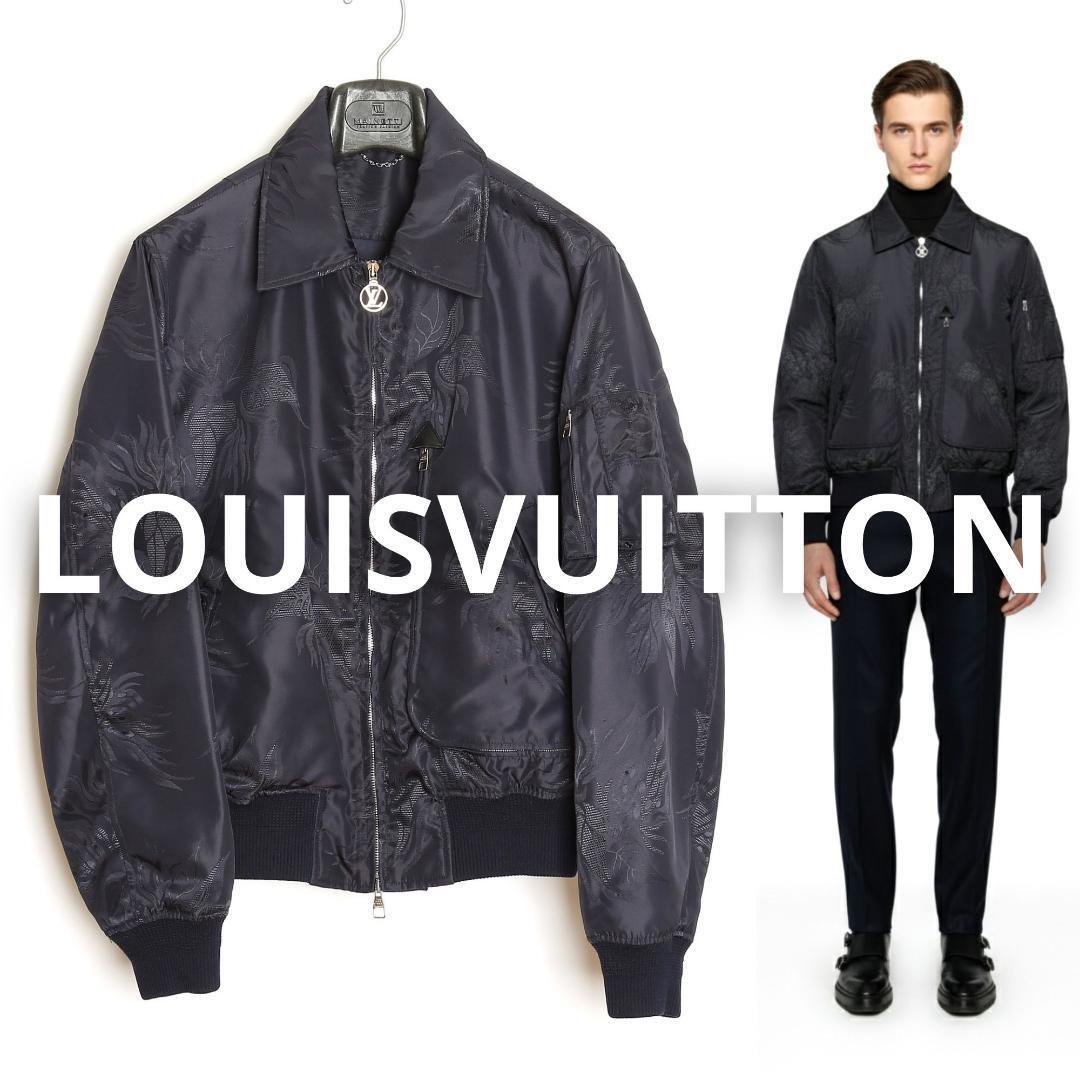 > LOUISVUITTON 18SS 国内正規品 リーフ柄 ナイロン ボンバージャケット 44 ジャガード総柄MA-1中綿フライトジャケット A-2 FENDI/DIOR関連