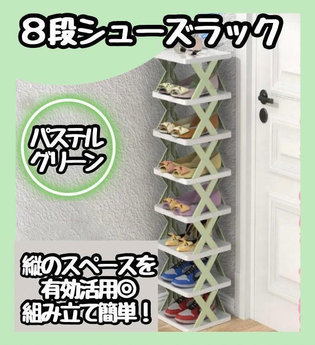 - 【新品】シューズラック 8段 靴収納 グリーン 整理整頓 新生活 組立式