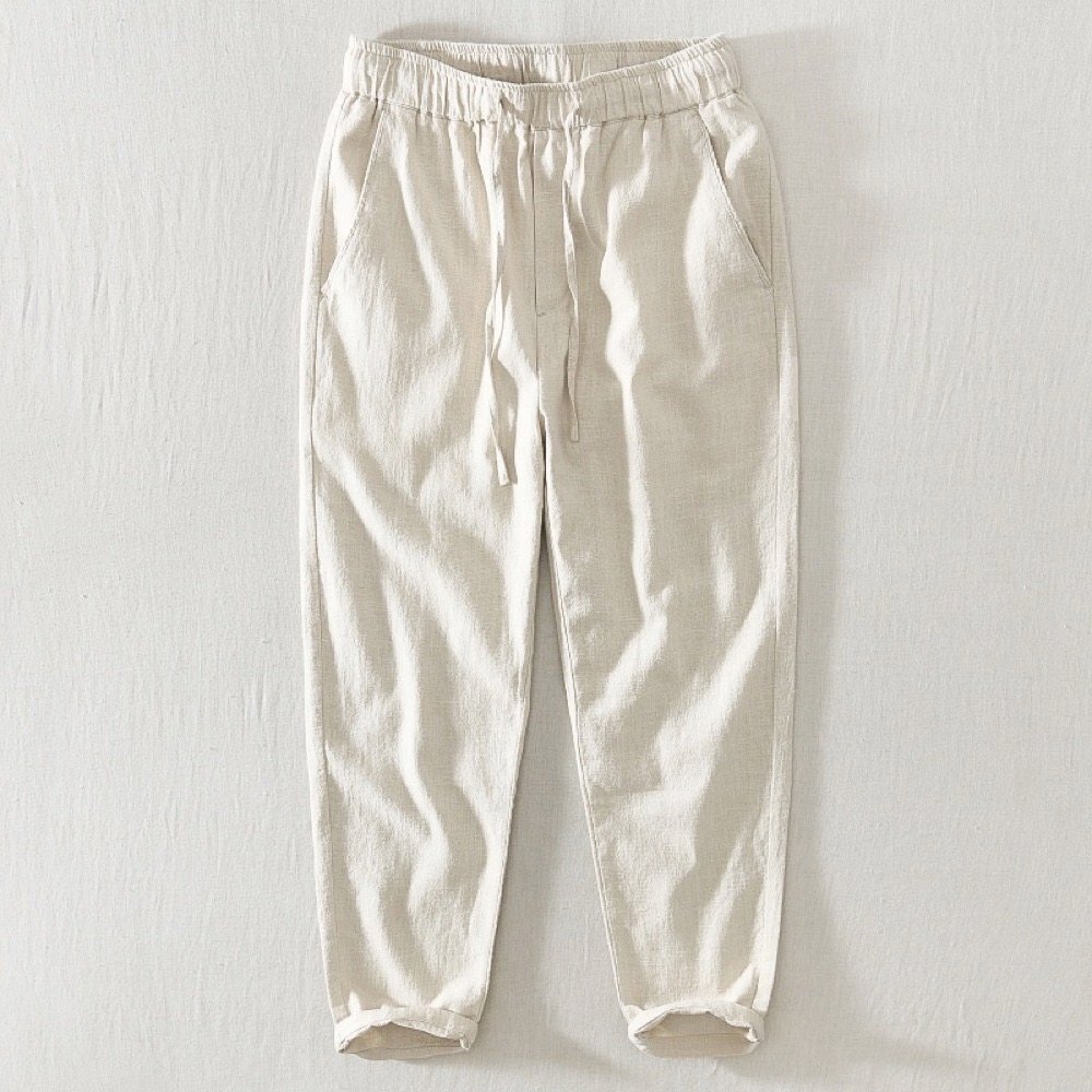 - メンズ麻綿ズボン リネンパンツ ワイド 無地 涼しい イージーパンツ チノパン ジョガーパンツ カジュアル ボトムス 9分丈 カーキ 2XL