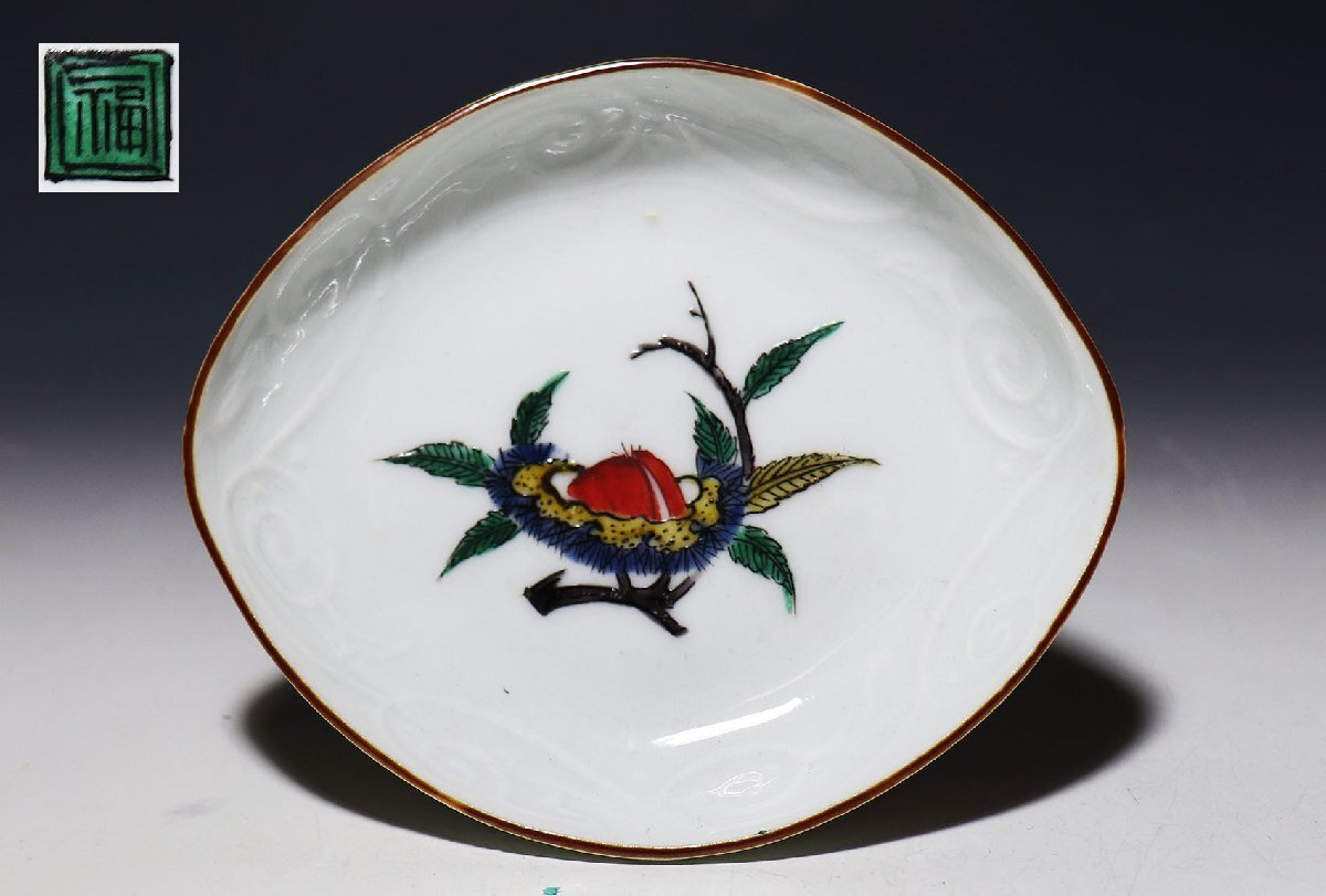 - 【桃】大聖寺九谷色絵陽刻栗の図変形皿