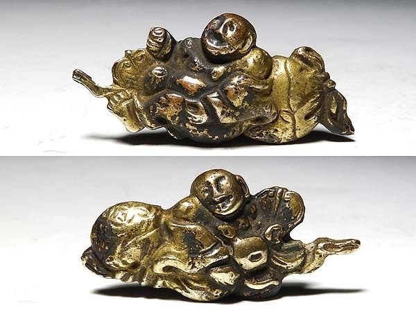 - 【桃】刀装具:金工銅地鍍金布袋様目貫