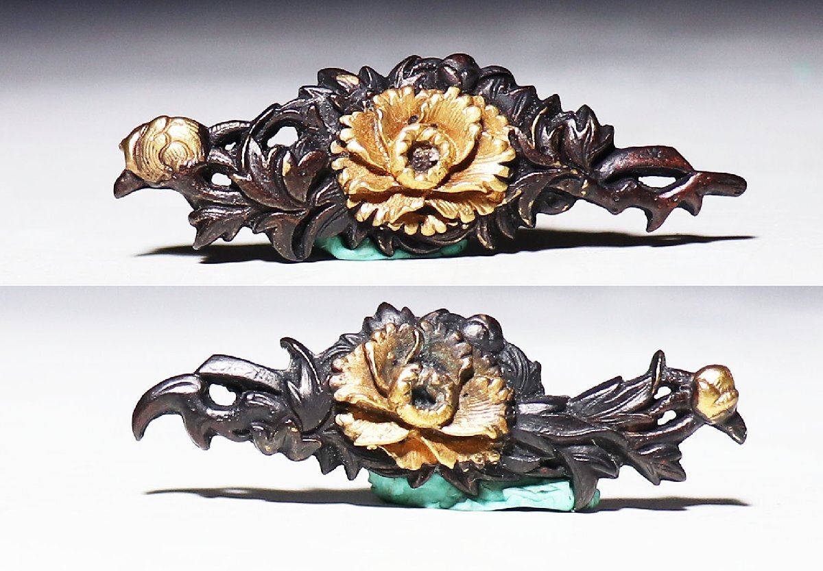 - 【桃】刀装具:金工銅地鍍金牡丹目貫