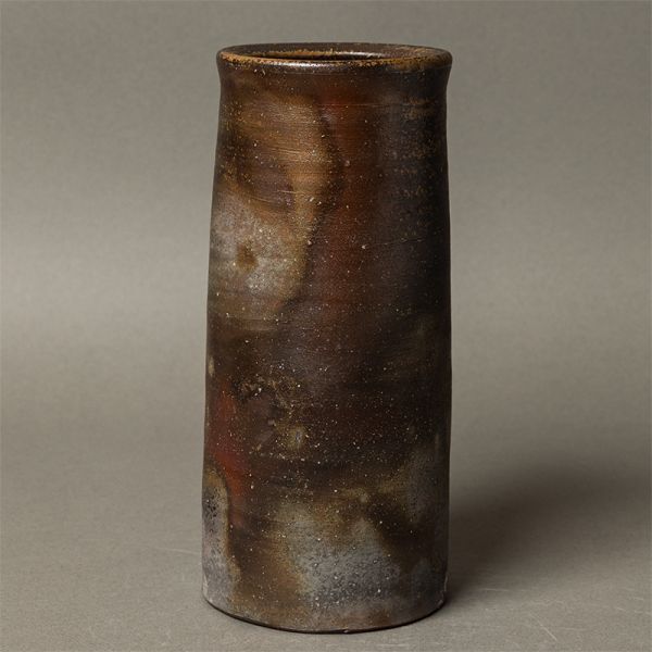 - 人間国宝 伊勢崎淳 備前筒花生 共箱・共布・陶歴付 ■本物保証■