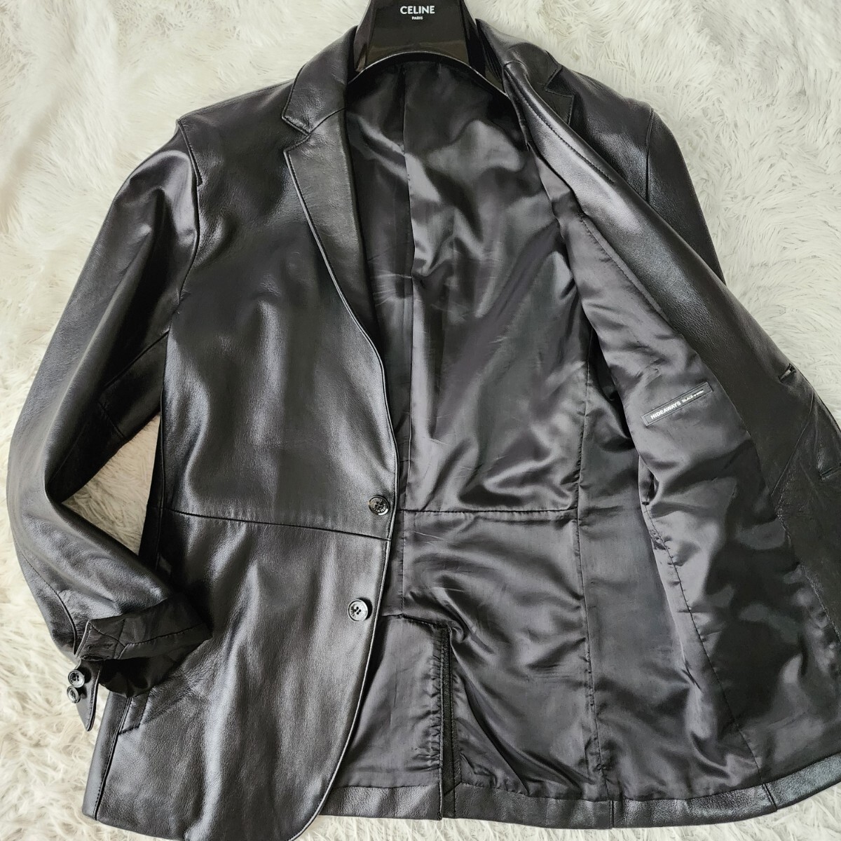 - 美品 ニコル ラムレザー テーラードジャケット【極上のトロトロ感】HIDEAWAYS BLACK by NICOLE 羊革 本革 シープ ブラック メンズ ロゴB