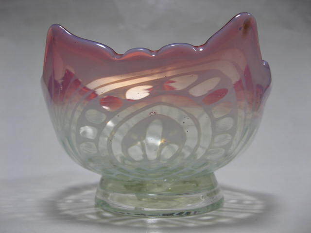 - ★大正~昭和初期 綺麗な赤縁乳白暈しの古代文氷鉢 和ガラス型吹き氷菓子容器レトロ古道具コップ★