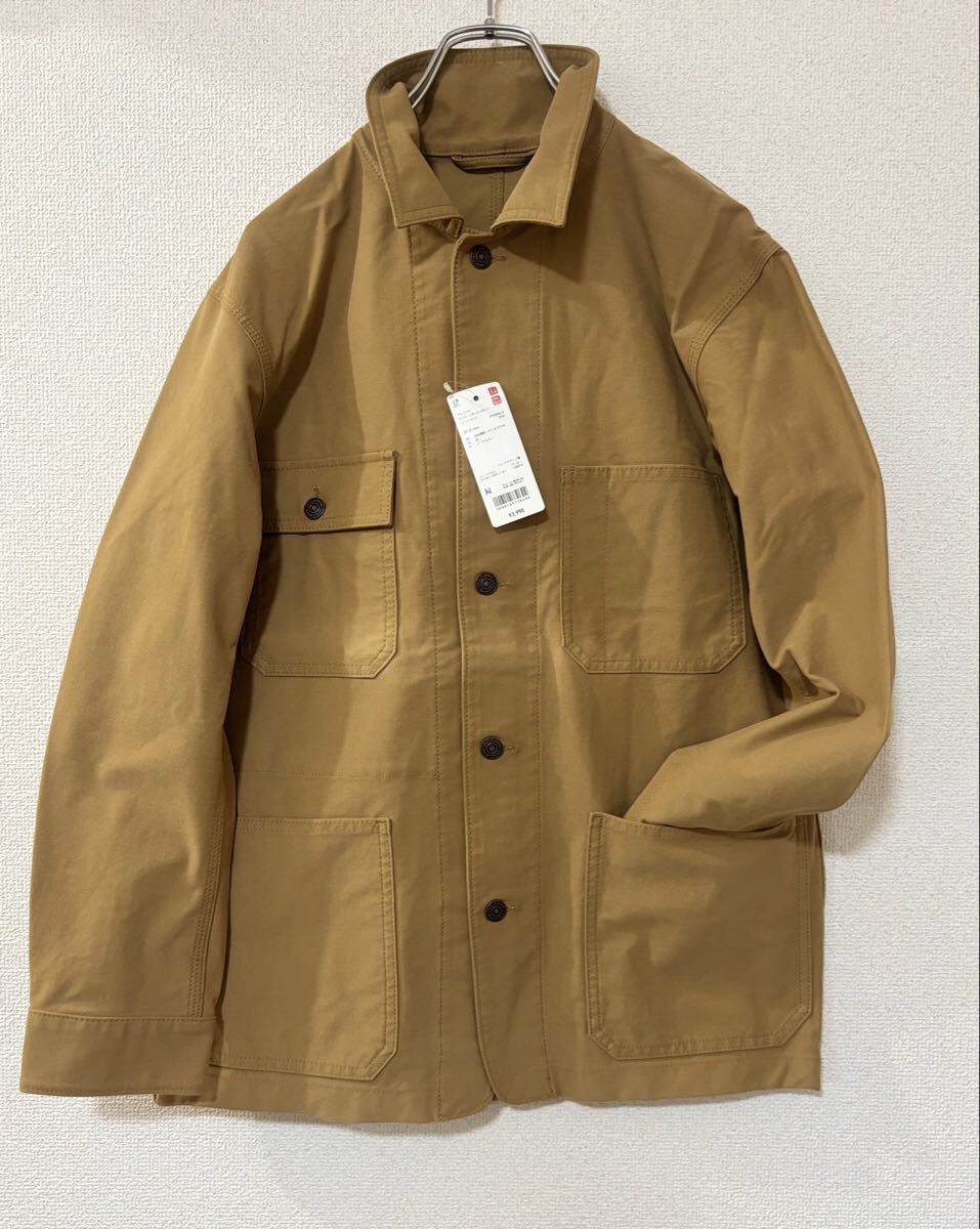 > 未着用 UNIQLO ユニクロ 難あり サイズM ウォッシュ ユーティリティ ジャケット ジャージー ブラウン ポリエステル コットン ワーク 1012