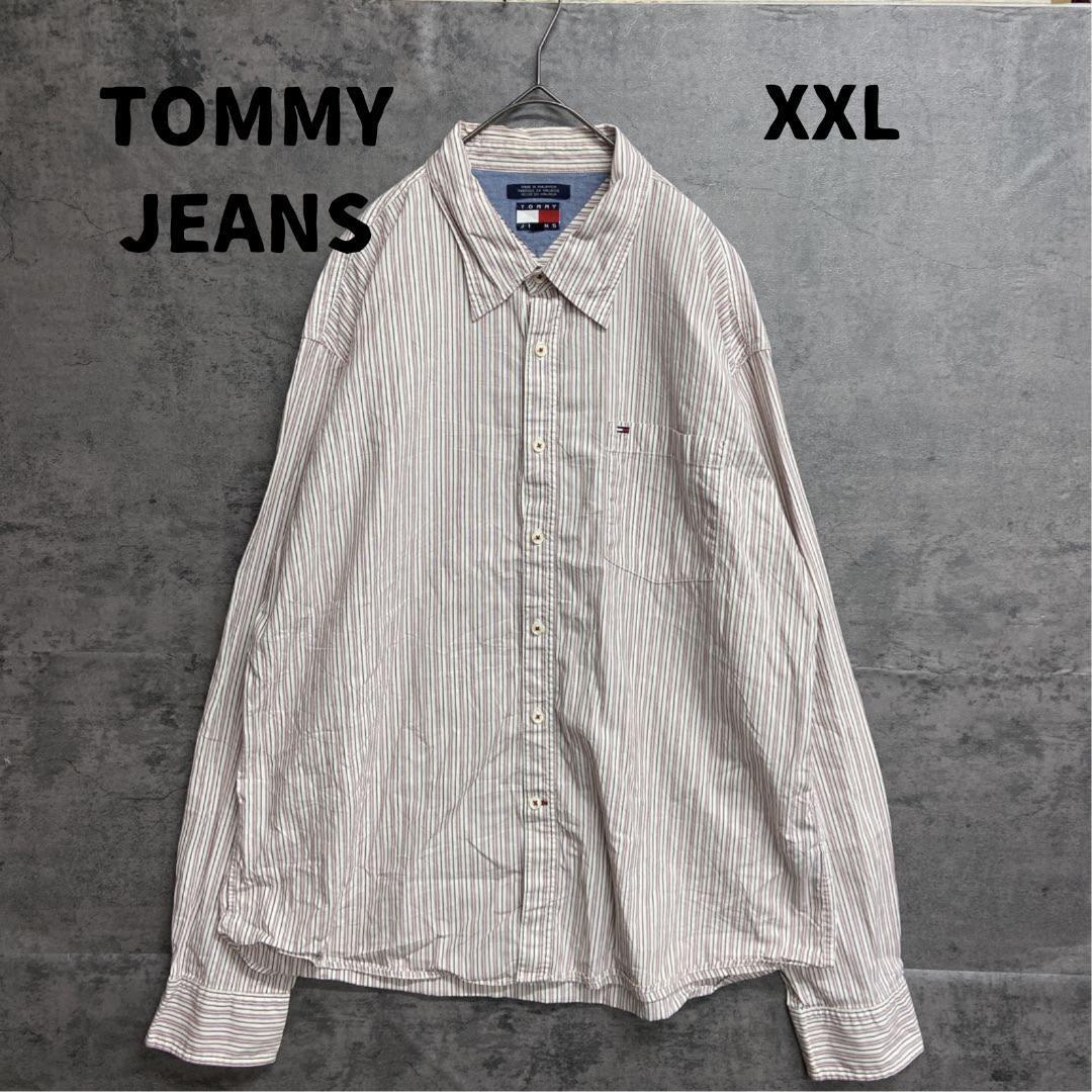 - トミージーンズ USA古着 XXL ストライプ 長袖シャツ 定番人気【6128】