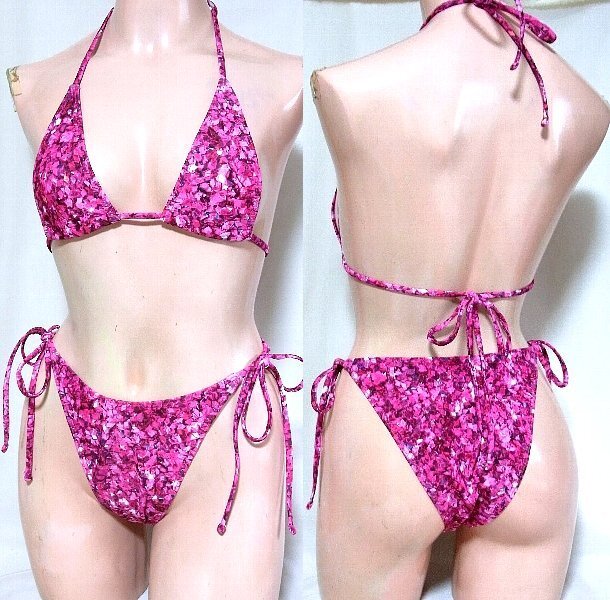 - ★☆赤ピンク柄セクシー三角ブラ&ひも結び超ハイレグビキニ水着☆★