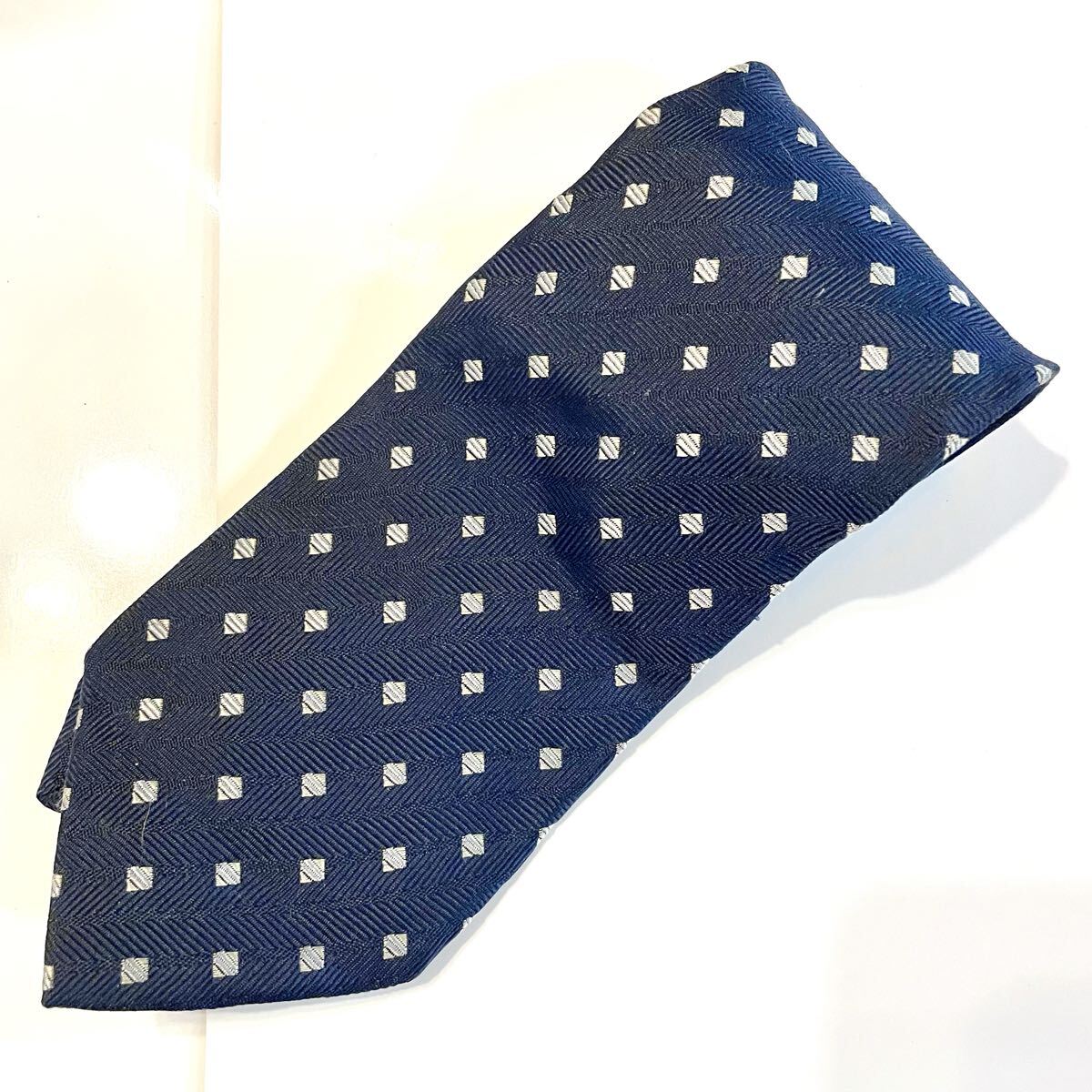 - ネクタイ イヴサンローラン ネイビー 総柄 YSL シルク k2510121