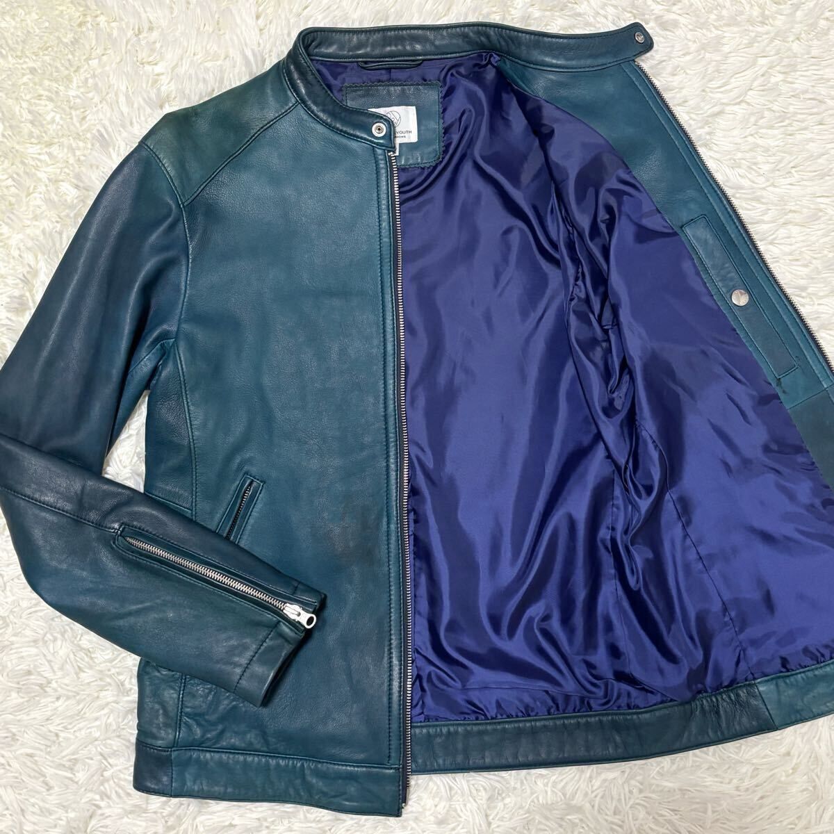 > 【極美品】XLサイズ 羊革ラムレザー UNITED ARROWS ユナイテッドアローズ シングルライダース ジャケット シープスキン 本革ジャン 青 LL