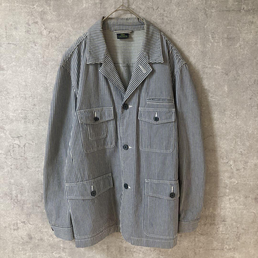 - LACOSTEヒッコリージャケット ワークジャケット オープンカラー開襟 L相当