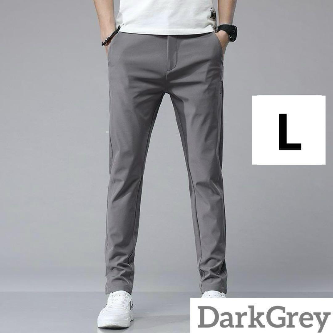 - 通気性 カジュアル パンツ L ダークグレー ロング 仕事 ズボン ゴルフ 濃灰色