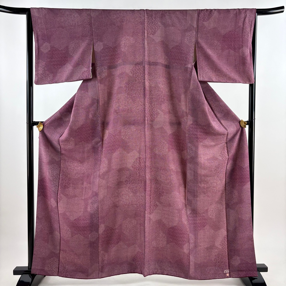 - 【美品】 江戸小紋 身丈163cm 裄丈64.5cm M 袷 落款 寄せ柄 赤紫 正絹 秀品 【中古】