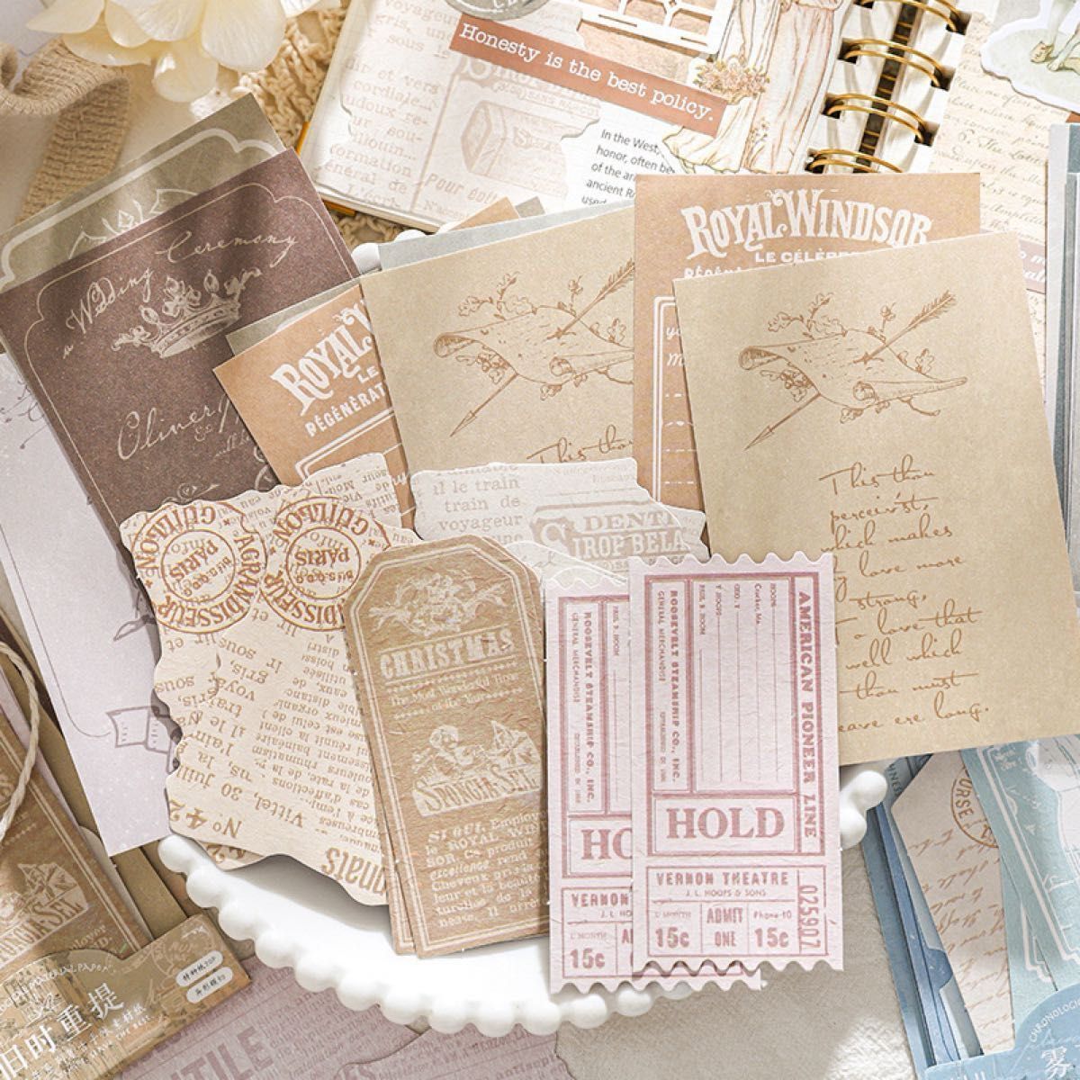 - 歳月紀年シリーズ 6種120枚 素材紙 ヴィンテージ ロゴ フレーム メモ 背景 装飾 スクラップブッキング コラージュ素材