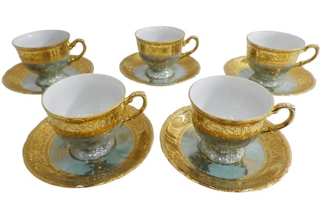 > 21☆0002 ●中古品 ノリタケ Family Chaina NTマーク カップ&ソーサー 5客 金腐装飾 現状渡し